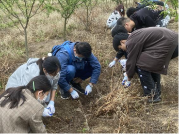 正在大家干得起劲时,天空开始下起小雨,但老师和同学们丝毫没有受到天气影响,继续埋头苦干,反而呈现出一副热火朝天的劳动景象。经过一个小时的努力,梨树下从一开始的杂草丛生变得整洁亮丽,老师和同学们的手套却由干净变得满是泥土。