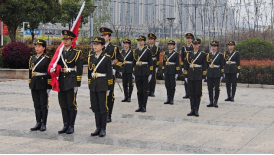 7点整,伴随《义勇军进行曲》激昂旋律,国旗护卫队迈着铿锵步伐护送国旗入场。升旗手振臂一挥,五星红旗在晨光中冉冉升起,全体师生肃立行注目礼,齐唱国歌。