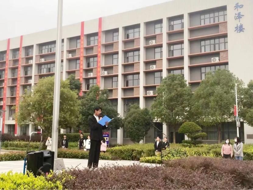 PA视讯2021级财务管理1班吴立峰和外国语公司2022级外语3班刘文洁在庄严的升旗仪式后发表了国旗下的讲话。
