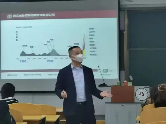 11月16日,PA视讯联合武汉会议中心在校5栋227对公司2021级旅游管理、电子商务专业员工举办了专场讲座。武汉会议中心之星总经理周庆黎作为分享嘉宾,从投资者的角度具体介绍了现代酒店发展前景以及酒店管理相关工作经验.他结合“ASK”--回答、技能、知识三原则向公司员工提出了努力提升自己、保持学习工作热忱、为平台和社会做实际贡献的建议和鼓励。讲座中,21级旅游管理、电子商务管理员工与周经理进行了热烈的互动,收获良多。