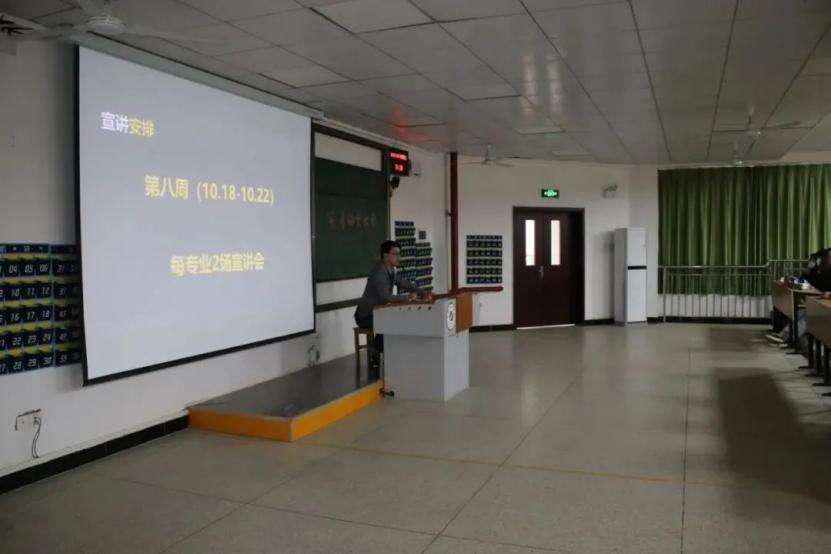 在会上,刘炫经理结合现在疫情防控和经济形势向毕业生介绍2021、2022届毕业生就业情况以及现今的就业形势,详解了2022-2023年定点合作的实习单位情况以及公司组织开展企业校园宣讲招聘会的部署安排。