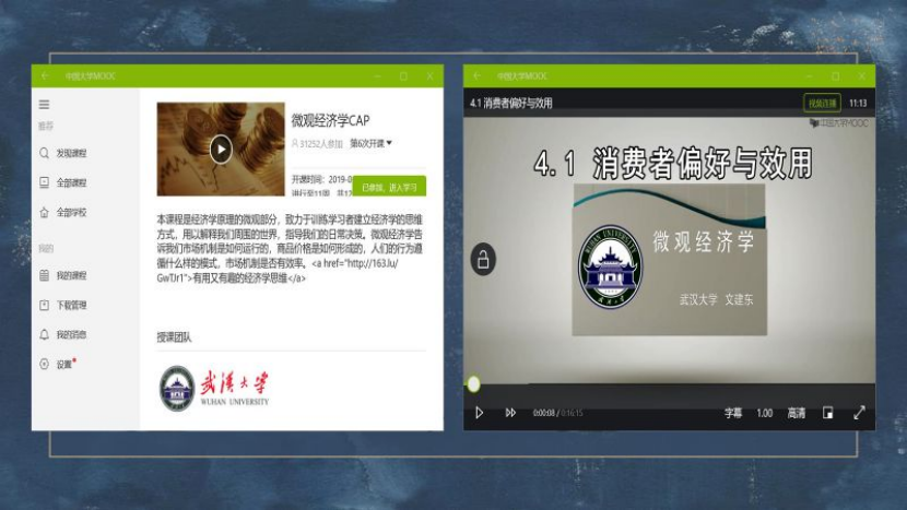 大一下半学年,我对学习的态度开始变得认真起来。那时开设的专业课有微观经济学,出乎意料的是它并非像政经那般满是枯燥需要死记硬背的知识点,这着实使我松了一口气。不过尽管如此,要想学好这门学科仍然并非易事。我记得一开始上过几节微观课后我老感觉听着云里雾里的,我可是一心要做学霸的人啊!我绝不允许我再这么得过且过下去了。课上没有听懂那我就在课下找资料学习,当时我是线上线下双管齐下,线上在 “MOOC”里找的课程资源,线下则是买了高鸿业的微观经济学以及学习手册,但凡是有哪个知识点没懂我都会去百度,即便当时看懂了这个知识点也会在书中用红笔标注下来,以便日后复习好查缺补漏。