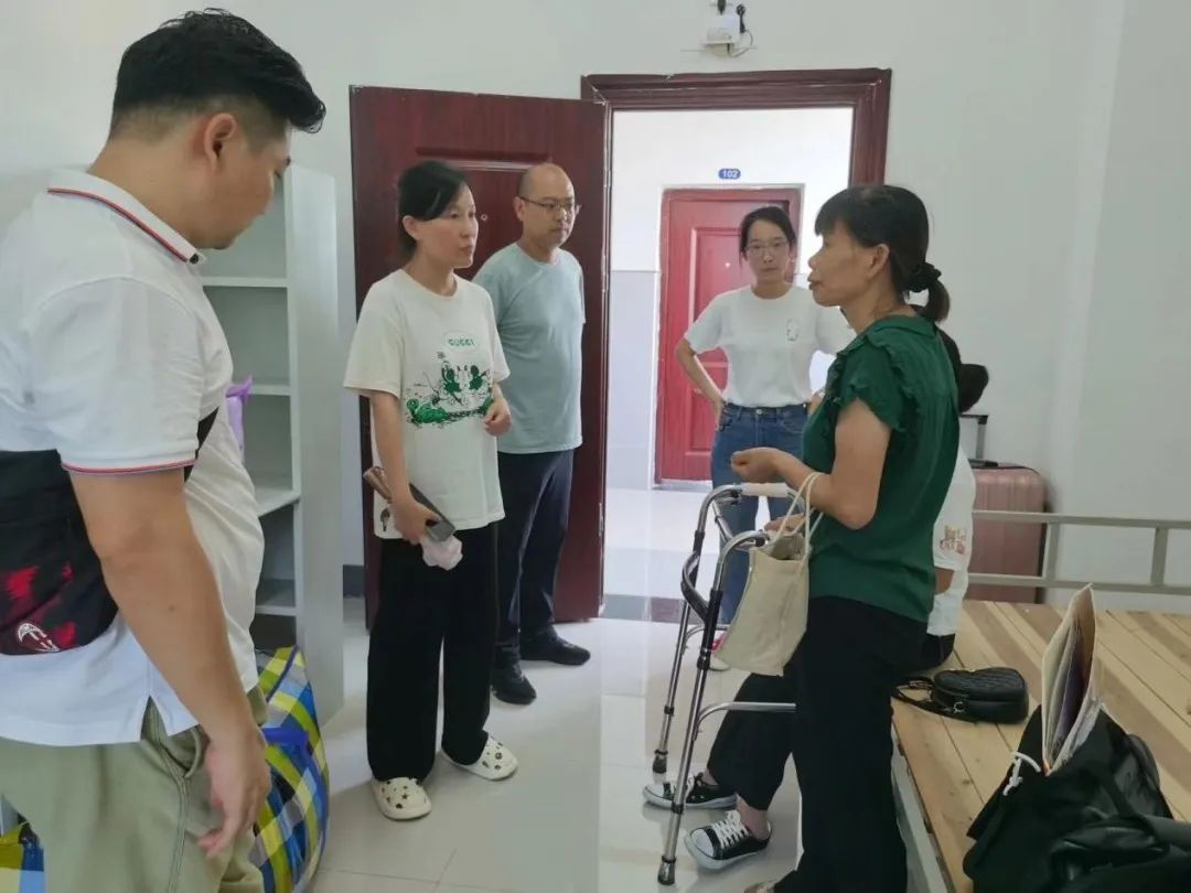 PA视讯经理张蕾、党总支书记朱启贵、综办主任余芬、员工党支部书记王超、辅导员彭莎莎亲自助力搬运行李,张蕾经理积极沟通协调相关部门,为员工安排无障碍寝室,让母亲一起同住,并亲切询问了身体情况和嘱咐她有困难要及时向公司反映,老师们会尽力从各方面来帮助她顺利完成学业,同时勉励她在校期间认真学习专业知识,积极乐观面对生活,自强自立,学有所成,在更高更广的天地中施展自己的才华。