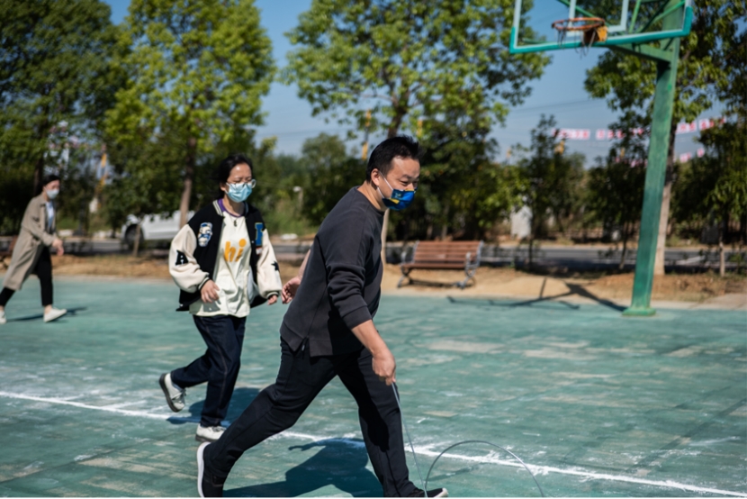 校教职工运动会赛场上,老师们在双腿夹球接力、滚铁环、集体八字跳绳、飞镖、气排球等项目中同台竞技,慧赛趣玩。个个当仁不让,享受着运动过程的快乐,赛场上笑声不停,加油声不断。