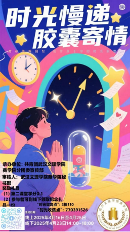 本次活动的核心创意在于“时光回溯"环节:所有作品与留言将由工作人员整理封存,通过邮箱在十年后(2035年4月)发送至参与者手中。为确保隐私安全,活动严格保护个人隐私,提前告知素材用途,并由宣传部专人加密管理数据,承诺未经授权绝不公开个人信息。
