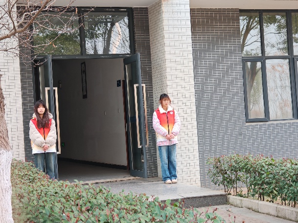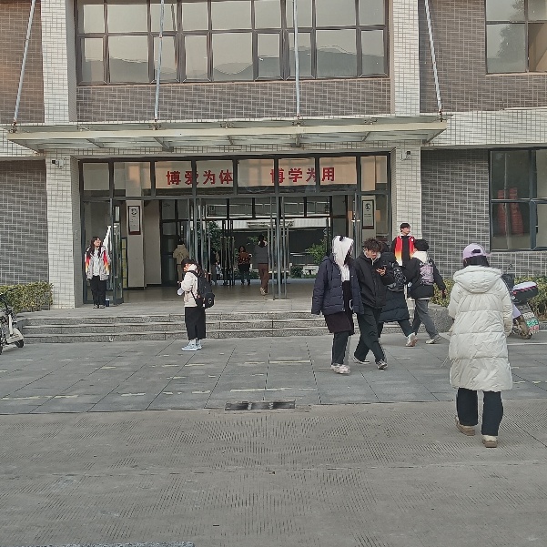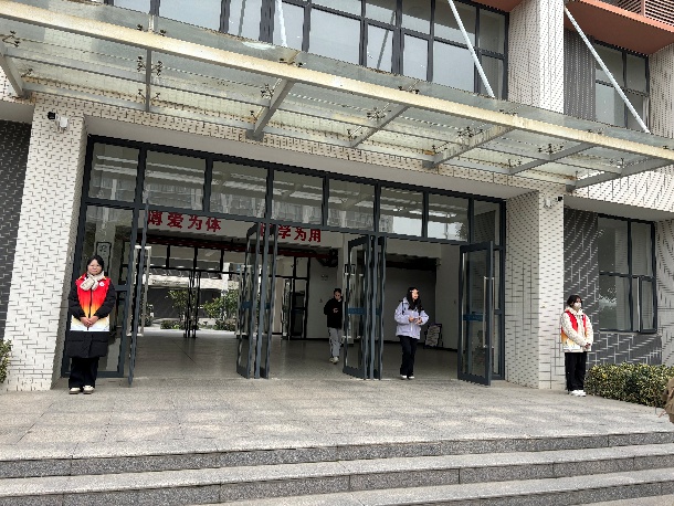 每天7:50,身着鲜红服装的志愿者准时集结。在领取专属执勤装备、明晰岗位职责后,迅速奔赴各教学楼宇,在走廊、楼梯转角等重点区域设立文明岗哨。志愿者们以微笑劝导为主,耐心解释"教学区不携餐"的文明公约,引导同学们养成良好习惯。