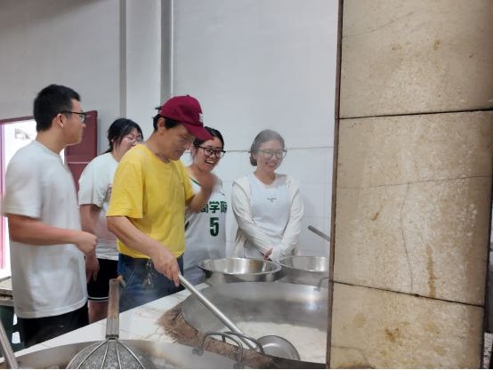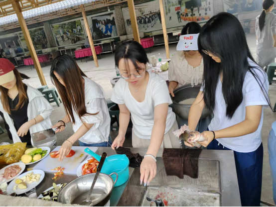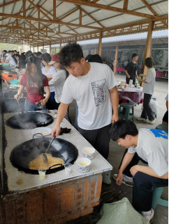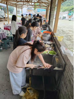 土锅灶前,一场别开生面的“劳动烹饪课”火热进行。同学们分组协作,生火组掌握“松枝引火、硬柴稳焰”的火候秘诀,炊事组钻研“刀工配比、调味均衡”的烹饪技巧。当投资学专业员工团队创新烹制的“独冠天下”(利用边角食材创意摆盘的观赏菜)惊艳亮相时,不仅展现了变废为宝的创新思维,更诠释了“厉行节约、反对浪费”的劳动风尚。投资系主任刘老师感慨:“原担心安全与厨艺问题,却惊喜看到员工们在安全规范下展现出的创造力——火候控制精准、菜品创意迭出,这正是劳动教育激活实践潜能的生动案例。”