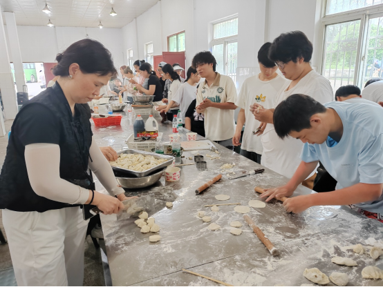 包饺子活动成为传统文化教育的鲜活课堂。揉面擀皮间,徐老师示范“中间厚、边缘薄”的擀皮技巧,讲述饺子“更岁交子”的文化渊源;包馅塑形时,同学们创意捏制“元宝饺”“花边饺”,在欢声笑语中感受传统美食的文化张力。“第一次包出歪歪扭扭的饺子,却比任何珍馐都更有意义——这不仅是味觉的满足,更是对‘一粥一饭当思来处’的深刻体悟。”24级电子商务专业员工李同学的话语,折射出劳动教育在文化传承中的独特价值。