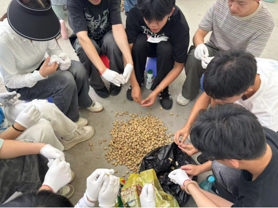 清晨的绿林山田野间,锄头与土地的碰撞声奏响劳动乐章。员工们俯身于玉米地、南瓜田中,在指导老师的示范下,精准识别杂草、规范除草动作。“以前对‘汗滴禾下土’只有文字认知,如今手掌磨出的水泡、浸透衣襟的汗水,让我真正读懂了劳动的分量。”23级财务管理专业员工王同学的感慨,道出了全体学子的心声。剥花生环节中,教官传授的“拇指食指卡两端,轻旋慢压巧发力”技巧,让员工们领悟到“劳动有技巧,行行出真知”的道理,看似简单的劳作背后,实则蕴含着劳动智慧与工匠精神。