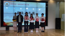 在比赛作品展示环节。各参赛队伍依次上台,在简要介绍团队理念后,现场演讲并展示其精心制作的短视频作品。同学们结合专业所学,以独特的视角与创新的视听语言,生动呈现了对中国式现代化的理解与展望,展现了商科学子扎根现实、面向未来的思考与情怀。