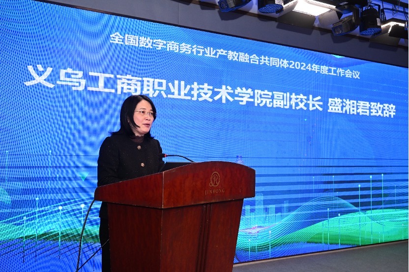 会议首先由主办方义乌工商职业技术公司副经理盛湘君致辞,盛经理指出,全国数字商务行业产教融合共同体是“数商开放行动战略”的重要一步,高校在共同体中应发挥人才智库作用,培养企业真正需要的数字商务人才。