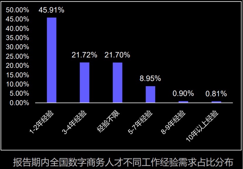 (4)行业细分程度:直播电商、新零售、数字供应链等众多细分领域不断涌现,行业细分趋势愈加明显,对专业人才的需求呈现出多样化的趋势;