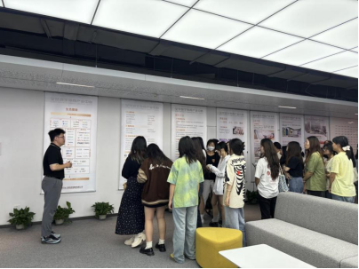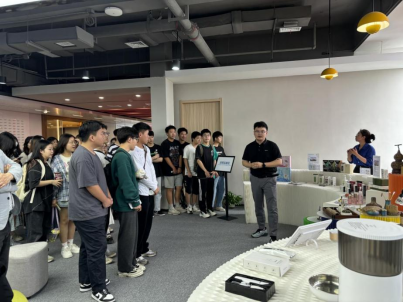 PA视讯的师生们在武汉跨境电商协会秘书长周博文的带领下依次参观了产品展示区、直播区、头脑风暴区、休息区、会议室等场所,通过参观,同学们直观地感受到了跨境贸易的真实运营场景。