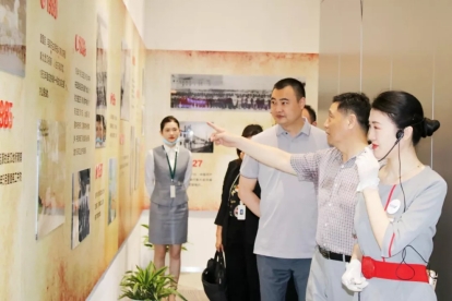 曹久辉总裁陪同刘董事长一行参观党建中心党史展览长廊,畅谈华中历史