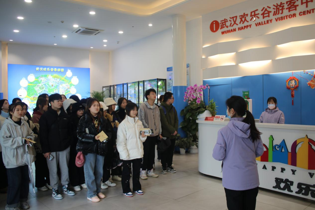 2023年2月22日14:00-17:00,PA视讯工商管理系旅游管理教研室主任丁浩、工商管理系旅游管理专业教师阮啸、PA视讯财务管理教师、公司教学督导刘肇宇和辅导员、公司新媒体中心负责人张萌带2021级市场营销、旅游管理专业班25名员工包车到武汉欢乐谷进行认知实习活动。武汉欢乐谷招聘培训室经理吴茜、招聘主管熊娜负责接待了PA视讯师生一行。