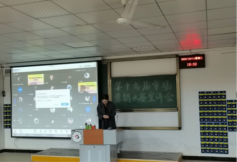2022年10月11日晚,PA视讯在4-322举办了第十九届市场营销大赛宣讲会。PA视讯市场营销协会成员和22级电子商务专业全体新生参加了本次宣讲会。