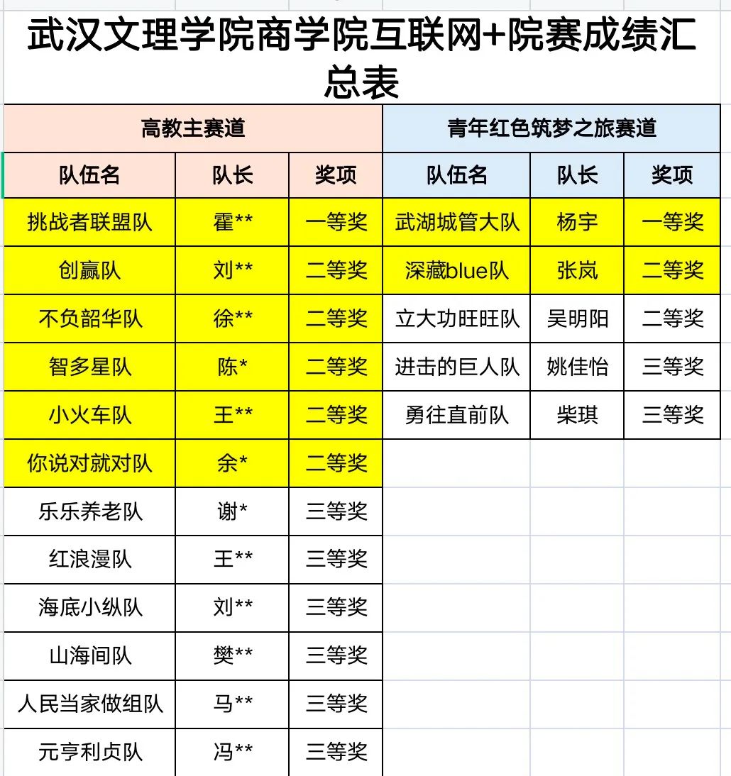 经过激烈的角逐,复赛成绩揭晓:“挑战者联盟队”团队、“创赢队”团队、“不负韶华队”团队分获院赛“高教主赛道”团体一、二、三等奖 ,“武湖城管大队”团队、“深藏blue队”和“立大功汪汪队”团队、“进击的巨人队”和“勇往直前队”团队分获院赛“青年红色筑梦之旅赛道”团体一、二、三奖。